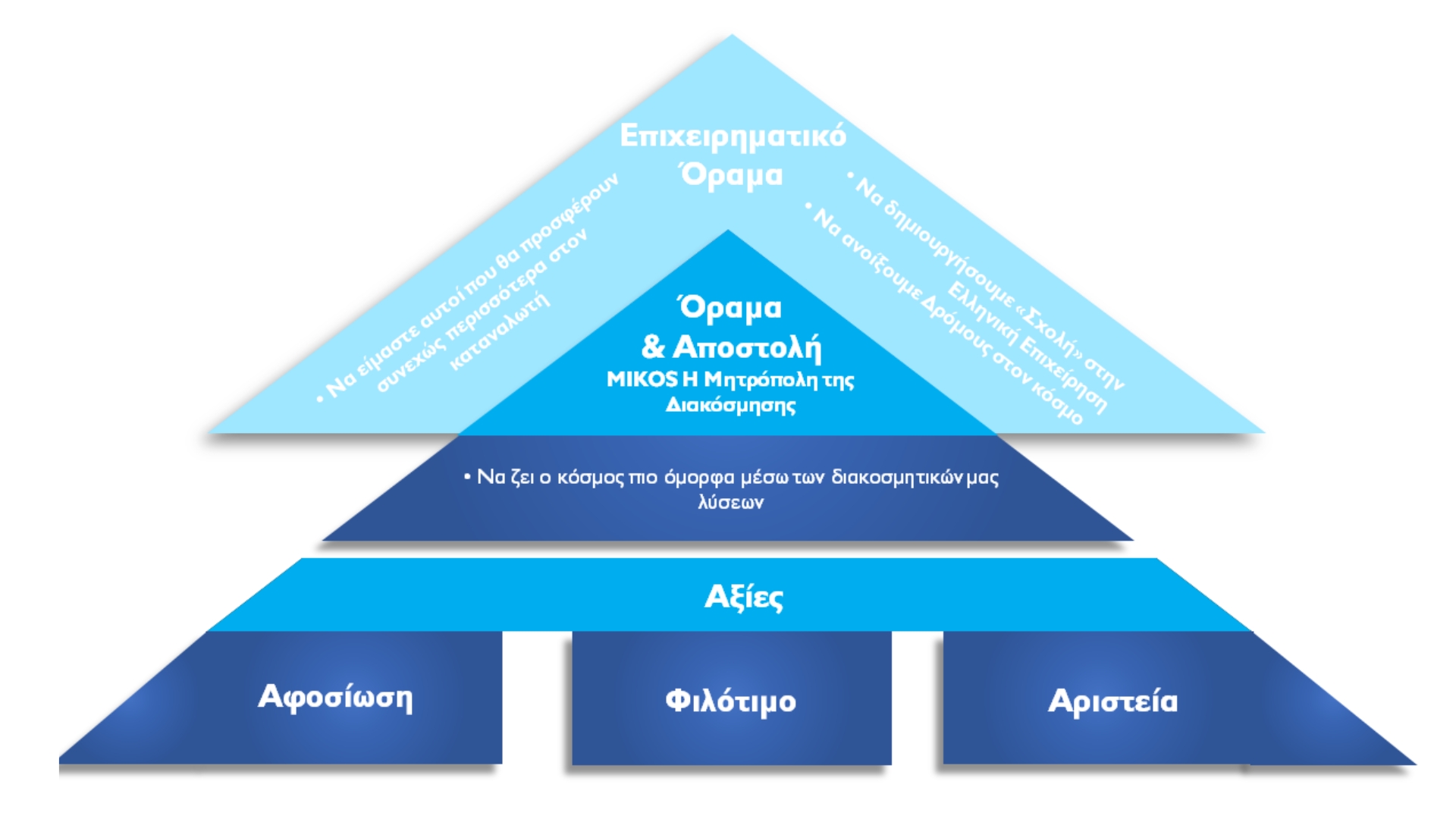 Έχουμε όμως και ένα ευρύτερο Όραμα, που θέλουμε να χαρακτηρίζει κάθε επιχειρηματική μας προσπάθεια: να είμαστε αυτοί που θα προσφέρουν συνεχώς περισσότερα στον καταναλωτή, να ανοίξουμε Δρόμους γνώσης και πολύτιμης εμπειρίας στον κόσμο, και να δημιουργήσουμε «Σχολή» στην Ελληνική Επιχείρηση.