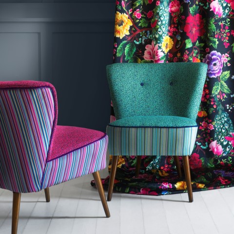 Βαμβακερά εμπριμέ, κεντημένα ή τυπωτά βελούδα, ζακάρ στόφες, σε χρώματα διαχρονικά ή της εποχής και σχέδια με εντυπωσιακά λουλούδια για ευφάνταστα φλοράλ υφάσματα επιπλώσεων.